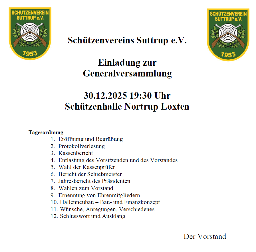 Bis auf den letzten Platz besetzt war die Schützenhalle bei der Generalversammlung des Schützenvereins Suttrup. Unter den Anwesenden konnte Präsident...